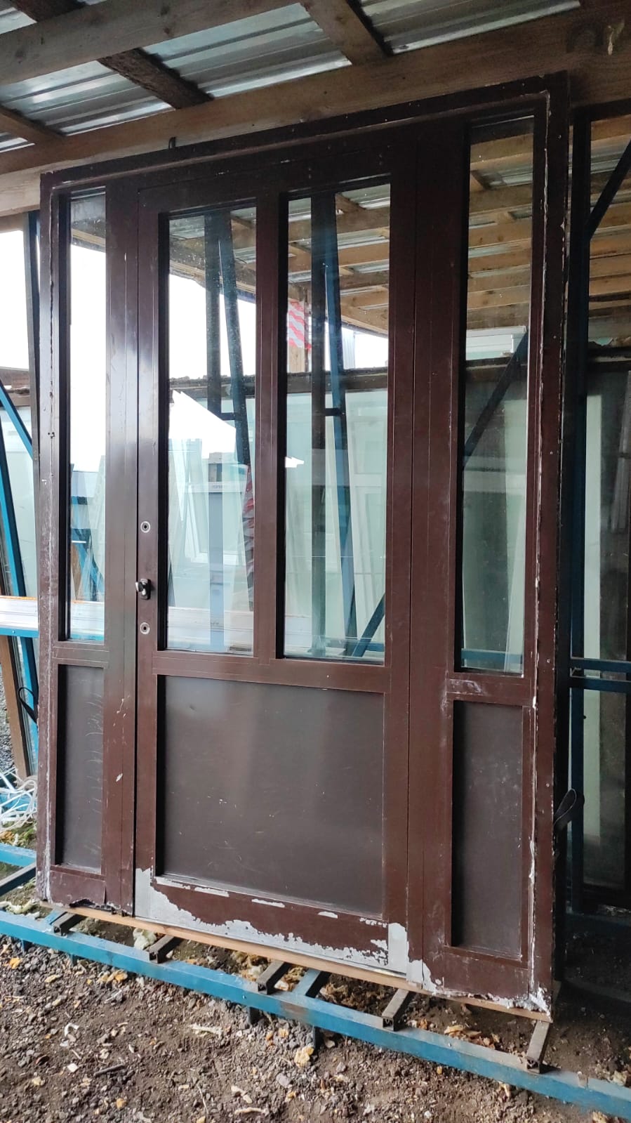 НФ-00003854 нар.внут.окрас корич. ручки нет. замок барашек. сильно бу. размер дверного проема 2200*900. порога нет.