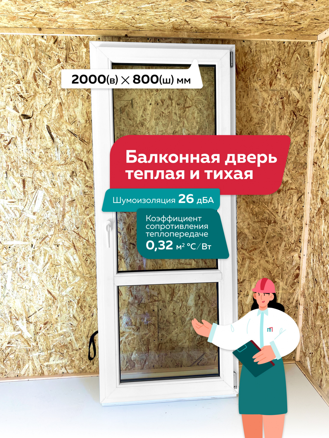 Балконная дверь (В)2 000х(Ш)800 1 ств пов-отк прав 1КАМ.СП.+ИМП.+СП.