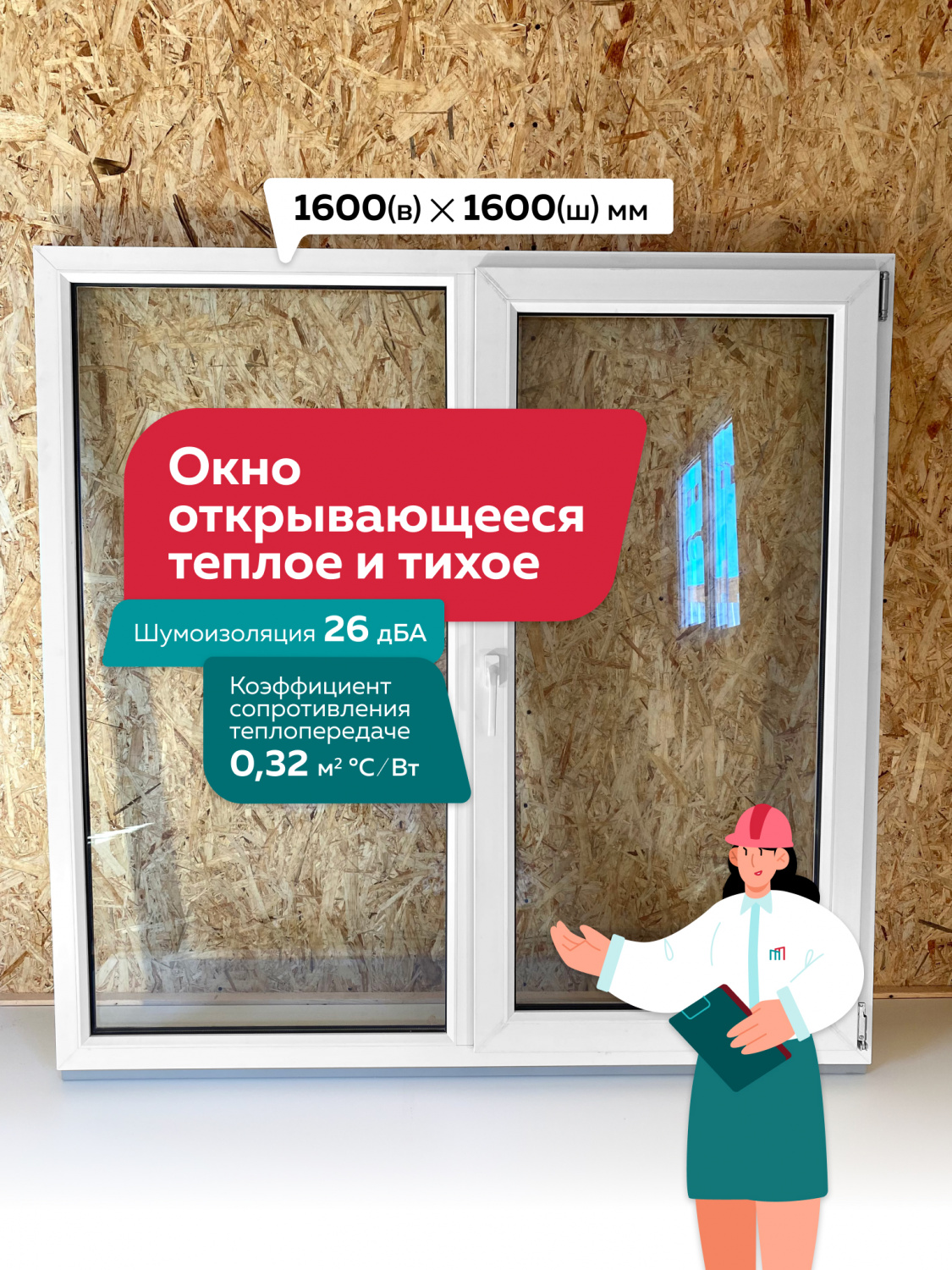 Окно (В)1 600х(Ш)1 600 2 ств пов-отк прав 1КАМ
