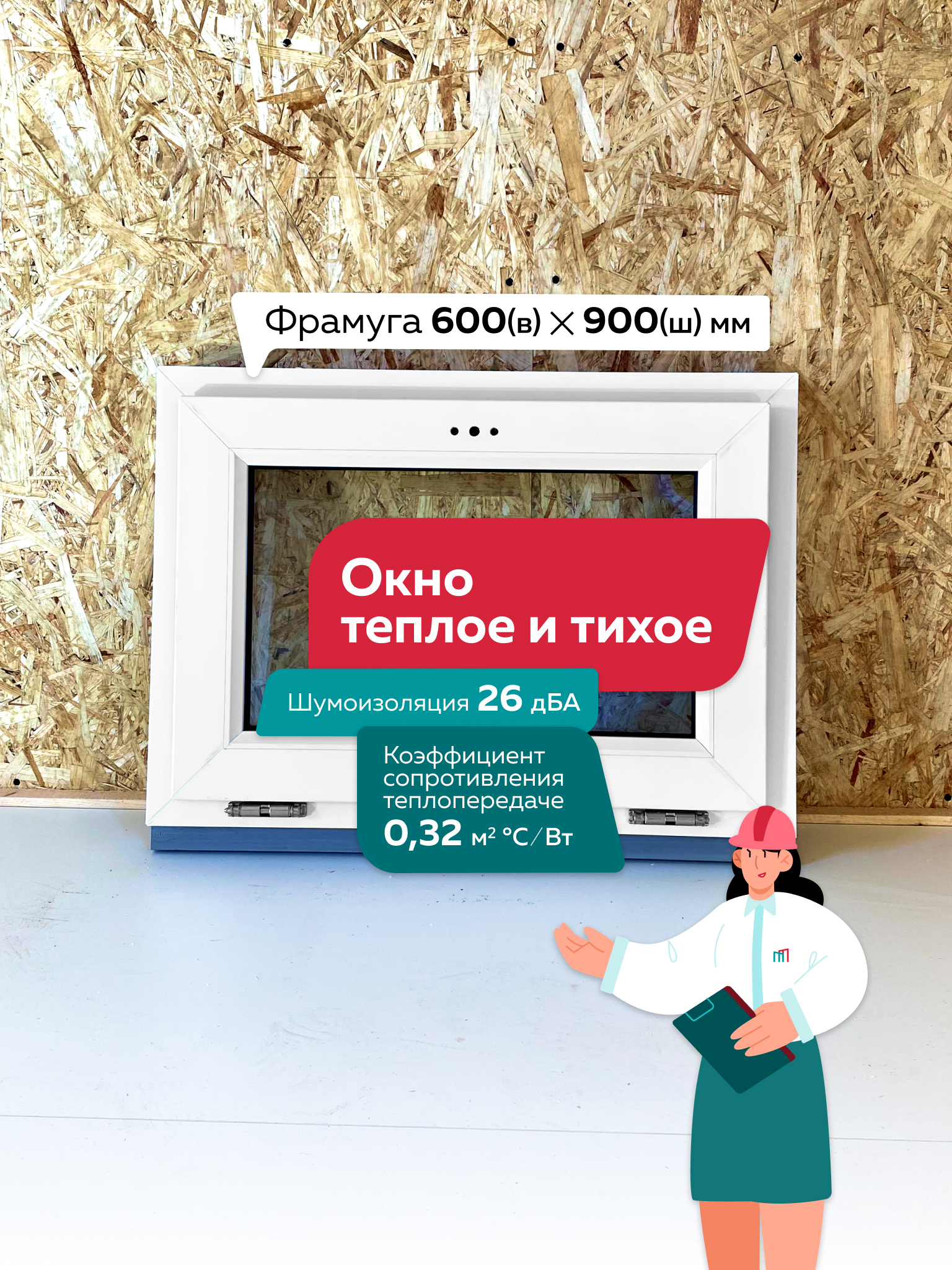 Окно (В)600х(Ш)900 1 ств фрам 1КАМ