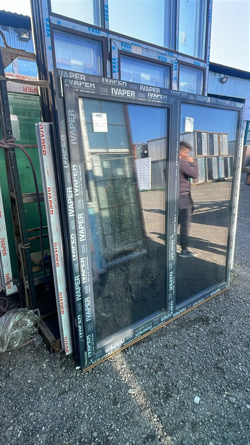 Окно ПВХ Ivaper 70мм 1 800х1 730 мм 2 ств пов-отк лев 2КАМ / Антрац.-серый