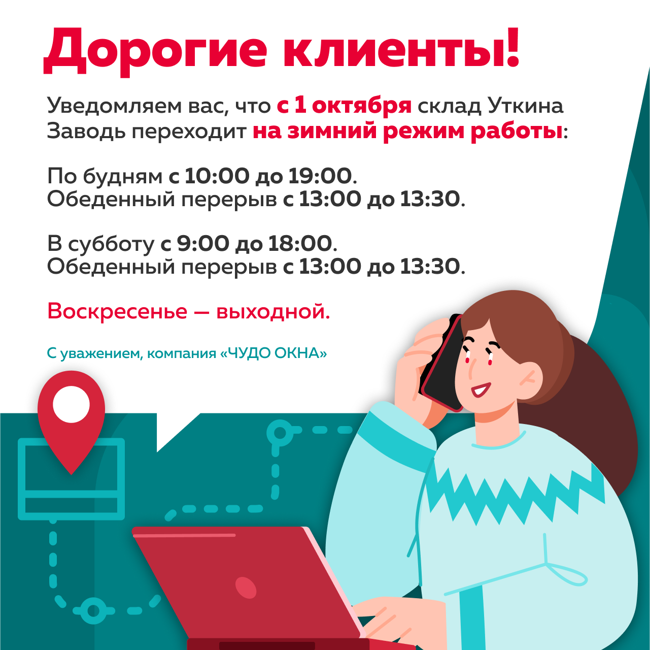 Уведомляем вас о том, что с 1.10.2025г. склад (Уткина Заводь) переходит на зимний режим работы.